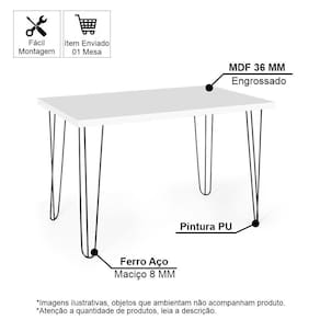Sua base é produzida em arame de aço ferro 8MM com pintura PU e tampo em MDF 36MM engrossado com acabamento em borda de PVC, material que garante maior segurança e durabilidade ao produto, seu acabamento em melamina fosca oferece mais leveza e beleza ao móvel, deixando seu espaço com um toque charmosos e moderno.