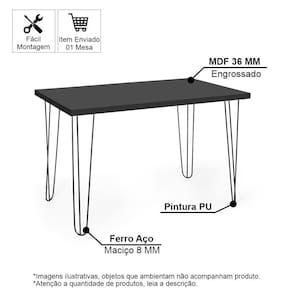 Mesa de Jantar Retangular 6 Lugares 140x75 Base de Ferro Hairpin - Straub Web - Preto