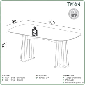 Itens Inclusos: 1 Mesa de Jantar (TM69)