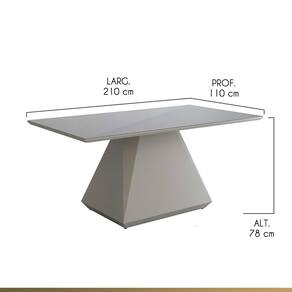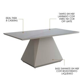 CARACTERÍSTICAS TÉCNICAS: - Base Diamante Produzida em MDF com Revestimento Laqueado - Tampo Produzido em MDF Laminado com Vidro 4mm na Cor Off White - Tampo com Detalhe Chanfrado - Produto Entregue Semi Montado *Ideal para 8 Cadeiras