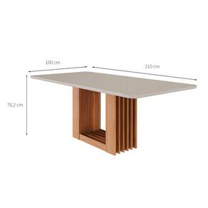 Mesa de Jantar Retangular com Tampo de Vidro Ariela Off White e Cinamomo 210 cm - Marrom