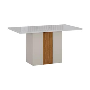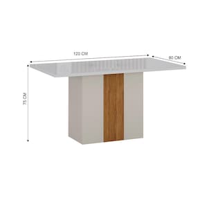 Mesa de Jantar Retangular com Tampo de Vidro Doha 100% MDF Off White e Amadeirado 120 cm
