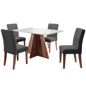 Mesa de Jantar Retangular Dobuê Dublin com 4 Cadeiras Revestidas em Tecido Veloplus - Cedro/Branco Off/Grafite