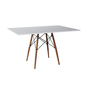 MESA DE JANTAR RETANGULAR EAMES EIFFEL BRANCA 120X75CM BASE MADEIRA