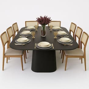 Ideal para 10 á 12 lugares, a Mesa Ébano Prestige é perfeita para quem valoriza o design, a qualidade e a durabilidade em um único produto.