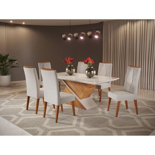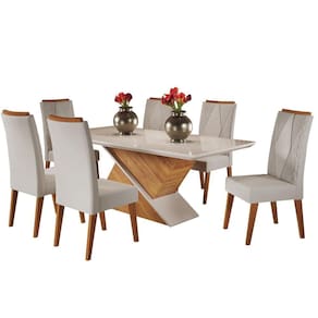 Mesa de Jantar Retangular Encantare com 6 Cadeiras Vegas Mel/Marfim/Off White - Bege