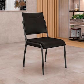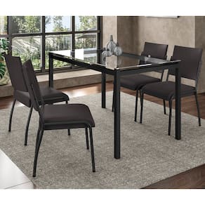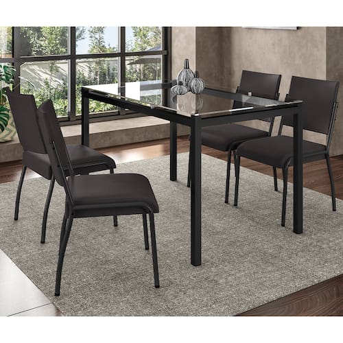 Mesa de Jantar Retangular Fabone Alexa com Tampo de Vidro de 140X80cm com 4 Cadeiras de Jantar Fabone Dora Revestimento em Courino - Fosco/Café