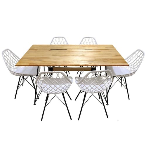E mais, esse conjunto ainda vem acompanhado de seis cadeiras estruturadas com assento feito em polipropileno e capacidade para suportar até 110kg cada. Além disso, os seus pés também são feitos em metal e possuem pintura UV.