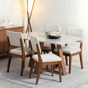 Mesa de Jantar Retangular c/ Vidro para 6 Lugares Avena 184 cm - Canella c/ Off White Fosco