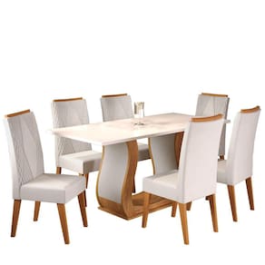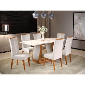 Mesas são indispensáveis para o funcionamento da casa e é no cômodo de confraternização que elas ganham protagonismo. Composto por peças de muito charme, o Conjunto VITALIC com cadeira Vegas torna o uso desse móvel importante para garantir uma usabilidade plena para o seu dia a dia. Ideal para cozinhas e salas de jantar. Medida da Mesa (A x L x P): A:79,4 x L:160 x P:80cm Peso da Mesa: 41,8 kg Mesa suporta até: 50.0000 Acabamento da Cadeira/Banco: Pintura UV Acabamento da Mesa: Pintura UV Acompanha Manual de Instalação: Sim Ambiente Principal: Sala de Jantar Cadeira/Banco Estofada: Encosto e Assento Estofados Cadeira/Banco estofada: Encosto e Assento Estofados Cadeira/Banco suporta até: 90.0000 codigo_ean: 7909903491515 Complexidade da Montagem: Média: pode ser montado por mais de uma pessoa e/ou necessite de maior conhecimento para montagem Cor: Mel/Blonde/Marfim Cor do Produto: Mel/Blonde/Marfim De Canto (Canto Alemão): Não Enchimento do Assento: Espuma D-20 Escala de Brilho: Semi-Brilho Espessura do Tampo: 25 mm Formato do Tampo: Retangular Informações Complementares: Sala de Jantar 6 lugares Itens Inclusos: 1 Mesa, 6 Cadeiras, Kit Ferragem e Manual de Montagem Manual de Montagem e Instalação: https://product-hub-prd.madeiramadeira.com.br/880313/documents/dbea7fba-278d-4240-a3df-8efe13ca9420agemsalavitaliccomcadvegas.pdf Material da Base da Mesa: MDF/MDP Material da Estrutura da Cadeira: MDF/Madeira Maciça Material do Tampo: MDP Material Principal: MDF/MDP Material Principal das Cadeiras/Bancos: Madeira Maciça Medida da Cadeira/Banco (A x L x P): A:101 x L:41 x P:61cm Medida do Tampo (L x C x E): L:160 x P:80 x E:2,5cm Mesa Extensível: Não Necessita Montagem: Sim Origem do Produto: Nacional Peso da Cadeira/Banco: 7,25 kg Possui Apoio Para os Pés: Não Possui Vidro: Não Quantidade de Cadeiras: 4 Quantidade de Lugares: 06 Recomendações de Uso, Manutenção e Limpeza: Limpar com pano levemente umedecido com água Revestimento da Cadeira/Banco: Veludo Sistema de Montagem: Parafusos, cavilhas
