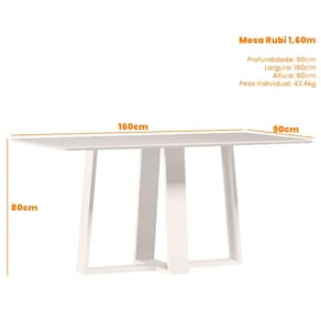 Mesa de Jantar Rubi 160x90 cm com Vidro Off White– New Ceval