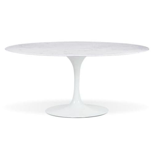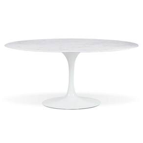 Mesa de jantar Saarinen Oval, Tampo 137x90 cm em Mármore, com contra tampo em MDF 25 mm, Base em alumínio fundido com pintura automotiva PU.