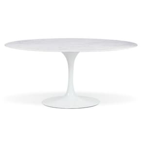 Mesa de jantar Saarinen Oval, Tampo 160x90 cm em Mármore, com contra tampo em MDF 25 mm, Base em alumínio fundido com pintura automotiva PU.