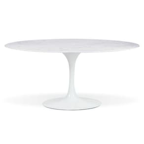 Mesa De Jantar Saarinen Oval 160x90 Cm Mármore Branco Extra Base Branca