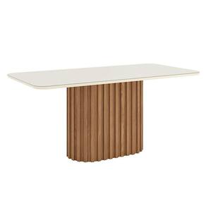Mesa de Jantar Solana 180 cm Canto Arredondado com Vidro Nature Off White – Henn