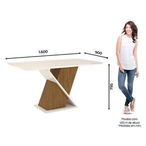 Mesa de Jantar Solus 160 cm Canto Arredondado com Vidro Nature Off White – Henn