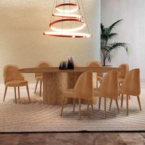 As cadeiras, com um design que encanta e abraca, oferecem conforto excepcional e um toque de delicadeza. Cada curva suave reflete a suavidade das colinas alpinas, enquanto os tecidos sofisticados e os acabamentos refinados proporcionam uma experiencia acolhedora e luxuosa. A ergonomia cuidadosamente pensada garante que cada momento ao redor da mesa seja envolto em conforto e elegancia.