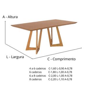 Mesa Tampo Madeira Tauari 1,80X1,00 1,80X1,00 - Acomoda até 6 lugares com conforto.