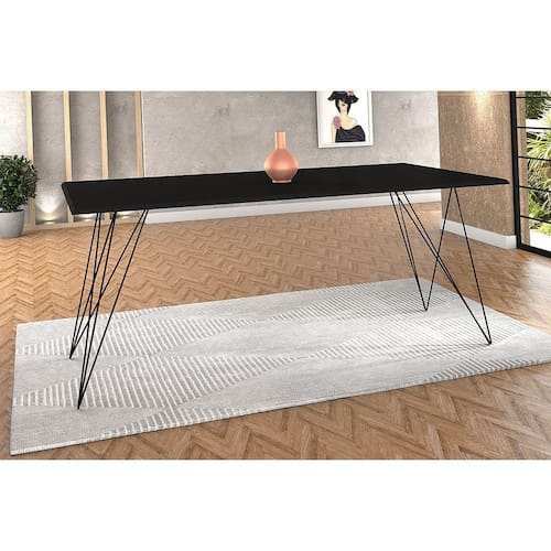 Mesa De Jantar Trama Plus Base Preta Com Tampo Preto 150 X 90 - New GreenA sua cozinha ou sala de jantar só estará completa com essa maravilhosa mesa para realizar as grandes as refeições em família. E se você busca um móvel com design contemporâneo, acompanhado de muita qualidade material e combinação de cores clássica, o modelo Trama Plus é para você!De tampo retangular e estrutura em ferro, essa mesa acomoda os seus convidados enquanto deixa o momento mais intimista. Mas não é só a sua rotina que ganha uma bela aliada: ela também complementa a decoração com sofisticação, além de ser harmonizável com cadeiras da mesma cor ou coloridas, seja para garantir um visual monocromático ou voltado para algo arrojado. Ah, a peça não acompanha cadeiras e você deve adquiri-las separadamente para deixar o uso completo.Informações importantes:- Os objetos que ambientam as fotos não acompanham o produto.- Verifique as dimensões do produto e certifique-se que o percurso que ele fará até o local de uso permite sua passagem.- Favor verificar se os Pés/Base estão dentro do forro inferior do produto.- Fique atento, nossas cores podem sofrer alterações dependendo do seu monitor.Instruções/Cuidados Limpar com Pano Levemente UmedecidoConteúdo da Embalagem 1 Mesa (Cadeiras não acompanham o produto) - Entregue em: 2 VolumesEspecificações:Modelo: Trama PlusFormato: RetangularTampo: Madeira MaciçaCor do Tampo: PretoPés/Base: Estrutura em Ferro // Tipo: Estrela // FixoCor dos Pés/Base: PretoDimensões: Altura: 76 cm // Largura: 150 cm // Profundidade: 90 cmMesa de Jantar Trama Plus Base Preta com Tampo Preto 150 X 90 - New Green