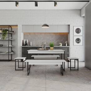Mesa de Jantar Tub C/02 Bancos e 02 Banquetas Branco Chess / Est.Preta: 135 x 70 x 74 cm