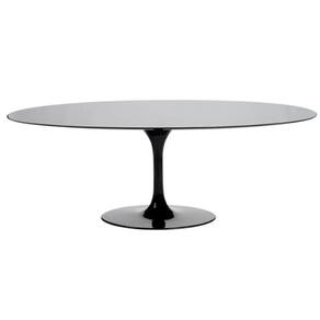 Mesa de Jantar Saarinen Oval, Tampo em MDF Laminado em Madeira, com contra tampo em MDF, Base em alumínio fundido com pintura automotiva PU.