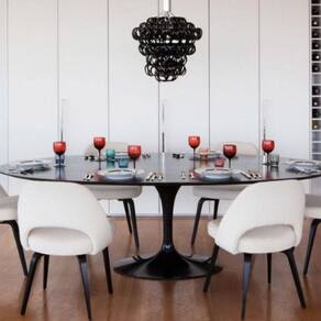 A famosa mesa Tulipa é conhecida nacional e internacionalmente devido ao nome do criador, o grande e renomado arquiteto Eero Saarinen, desenhada em 1956, a sua Base lembra o caule da flor Tulipa. O design orgânico desse Mesa faz dela umas das peças mais cobiçadas desde sua criação em 1956, fácil de combinar ela fica bem em qualquer ambiente, na cozinha, na sala, e até como mesa lateral no quarto, a peça inspira versatilidade.
