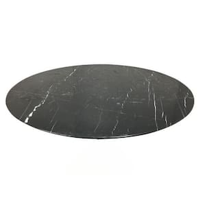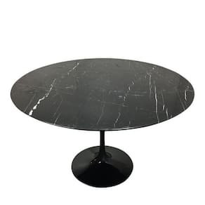 Mesa de Jantar Saarinen Redonda, Tampo 100 cm em Mármore Nero, com contra tampo em MDF, Base em alumínio fundido com pintura automotiva PU.