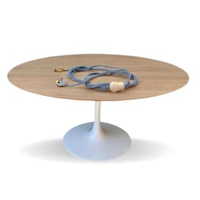 Mesa de Jantar Saarinen Oval, Tampo 110cm em MDF Melamina, com contra tampo em MDF, Base em alumínio fundido com pintura automotiva PU.