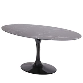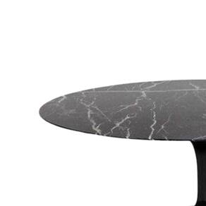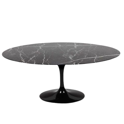 Mesa de Jantar Saarinen Oval, Tampo 120x80 cm em Mármore Nero, com contra tampo em MDF, Base em alumínio fundido com pintura automotiva PU.