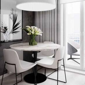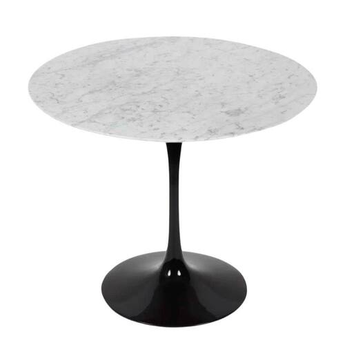 Mesa de Jantar Saarinen Redonda, Tampo 130 cm em GRANITO MÁRMORE CARRARA, com contra tampo em MDF, Base em alumínio fundido com pintura automotiva PU.