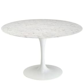 Mesa De Jantar Tulipa Saarinen Redonda 80 Cm Mármore Carrara Base Branca