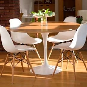 A famosa mesa Tulipa é conhecida nacional e internacionalmente devido ao nome do criador, o grande e renomado arquiteto Eero Saarinen, desenhada em 1956, a sua Base lembra o caule da flor Tulipa. O design orgânico desse Mesa faz dela umas das peças mais cobiçadas desde sua criação em 1956, fácil de combinar ela fica bem em qualquer ambiente, na cozinha, na sala, e até como mesa lateral no quarto, a peça inspira versatilidade.
