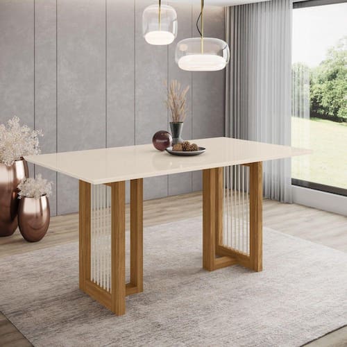Mesa de Jantar 06 Lugares Yara 1.600mm (NÃO ACOMAPNHA AS CADEIRAS) Medidas: A: 800 x L: 1600 x P: 800 mm Grantia: 90 dias. Recomendação de limpeza: Usa pano levemente umedecido com água, seguido por pano seco. Evitar exposição ao sol, para aumentar a durabilidade da cor do tecido. Não usar escova e/ou produtos abrasivos. Montagem: Montagem, desmontagem e outras instalações serão de responsabilidade do cliente. Não nos responsabilizamos, no ato da entrega, por subir escadas/elevadores ou pelo transporte por guincho em apartamentos. Eventuais despesas são de responsabilidade do comprador; Observações importantes: A tonalidade da cor do produto pode variar de acordo com a sua tela, a iluminação do ambiente ou sua percepção visual Lembrando que são fotos ilustrativas tratadas em estúdios podendo haver pequena diferença nas cores A montagem será de responsabilidade do comprador; Não nos responsabilizamos, no ato da entrega, por subir escadas/elevadores ou transporte por guincho em apartamentos. Eventuais despesas são de responsabilidade do comprador; Confira as dimensões deste produto e certifique-se de que passará normalmente por supostos elevadores, portas, escadas e/ou corredores de sua residência; Para mais informações, acesse nossa Central de Atendimento. Marca: LM DECOR