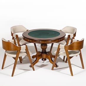 Se você procura algo versátil que compõe vários tipos de ambientes, o Kit Mesa de Jogos Redonda 140cm New Orleans com 04 Cadeiras Estofadas Suran M04 Imbuia da Lyam Decor é perfeito para sua casa. Sendo capaz de compor muito bem o ambiente, são produzidos com materiais de excelente qualidade e resistência. Possui estrutura em madeira maciça, na cor imbuia agregando elegância e pde ao ambiente. Você e seu lar merecem, adquira já o seu!!