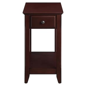 Mesa de madeira Acme Bertie com gaveta de armazenamento e prateleira de 1 nível em café expresso