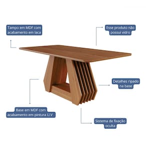 O(a) Mesa de Madeira ágata 180 Cm Cinamomo - Cimol é produzido em MDF na escala de brilho Semi-Brilho, e possui um grau de dificuldade de montagem: Médio.
