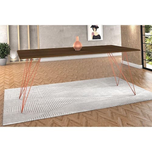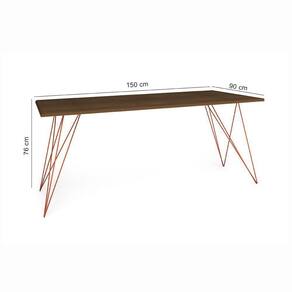 Mesa De Madeira Trama Plus Base Cobre Com Tampo Amêndoa 150 X 90 - New Green - Cor: Marrom