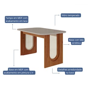 O(a) Mesa de Madeira Valentina 130 Cm com Vidro Cinamomo/Off White - Cimol é produzido em MDF na escala de brilho Semi-Brilho, e possui um grau de dificuldade de montagem: Médio.