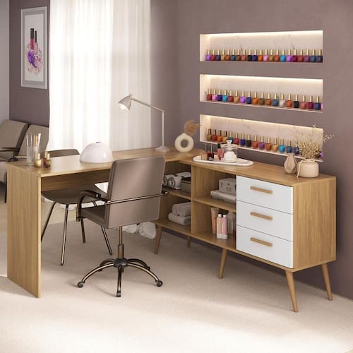 A Mesa de Manicure Profissional em L com 3 Gavetas Jady Multimóveis MP6041 foi desenvolvida para valorizar o seu talento e transformar cada atendimento em uma experiência ainda mais profissional. Com design funcional e excelente aproveitamento de espaço, ela oferece a organização e o conforto que você precisa para trabalhar com precisão, praticidade e elegância, elevando o nível do seu estúdio ou salão.