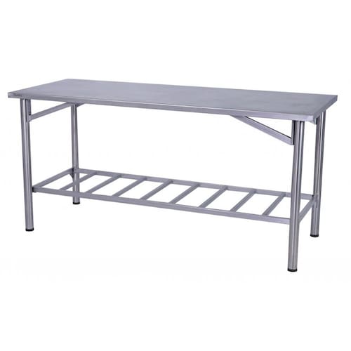 A bancada de manipulação 180X70CM possui um tampo feito de aço inoxidável 304 com reforço e espessura de 0,80mm, garantindo maior durabilidade ao produto. Sua estrutura é feita de tubo 2", proporcionando mais resistência e estabilidade à mesa. Além disso, possui um sistema de montagem por encaixe tipo cunha, paneleiro gradeado e pés com terminais de plástico e regulagem de altura, permitindo ajustar a mesa conforme a necessidade de uso.
