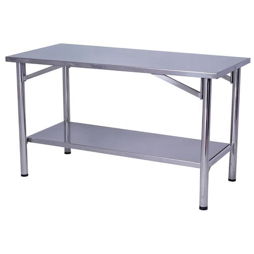 A bancada de manipulação 150X60CM possui um tampo feito de aço inoxidável 430 com reforço e espessura de 0,80mm, garantindo maior durabilidade ao produto. Sua estrutura é feita de tubo 2", proporcionando mais resistência e estabilidade à mesa. Além disso, possui um sistema de montagem por encaixe tipo cunha, paneleiro liso e pés com terminais de plástico e regulagem de altura, permitindo ajustar a mesa conforme a necessidade de uso.