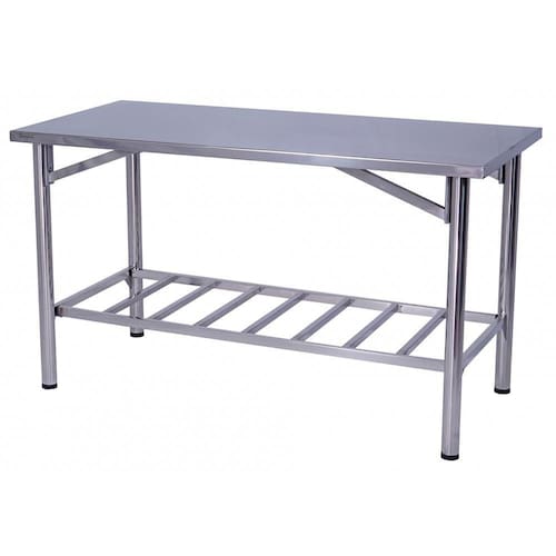 A bancada de manipulação 180X80CM possui um tampo feito de aço inoxidável 430 com reforço e espessura de 0,80mm, garantindo maior durabilidade ao produto. Sua estrutura é feita de tubo 2", proporcionando mais resistência e estabilidade à mesa. Além disso, possui um sistema de montagem por encaixe tipo cunha, paneleiro gradeado e pés com terminais de plástico e regulagem de altura, permitindo ajustar a mesa conforme a necessidade de uso.