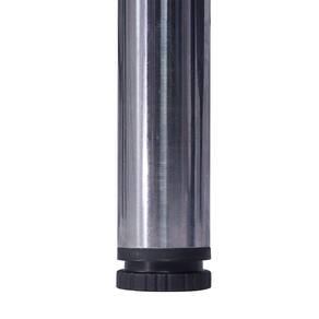Conta com montagem através de encaixe tipo cunha, além de pés com terminais de plástico com regulagem de altura, para ser ajustado conforme o uso da mesa de inox.