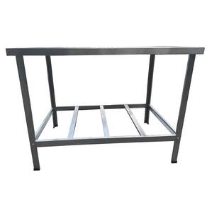 Os pés e travessas desta mesa de manipulação de alimentos são feitos em aço carbono pintado e seus pés de apoio contam com acabamento de plástico, para que o equipamento não desloque durante a sua utilização.