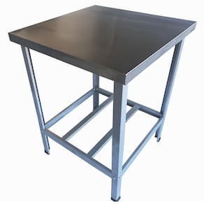 Os pés e travessas desta mesa de manipulação de alimentos são feitos em aço carbono pintado e seus pés de apoio contam com acabamento de plástico, para que o equipamento não desloque durante a sua utilização.