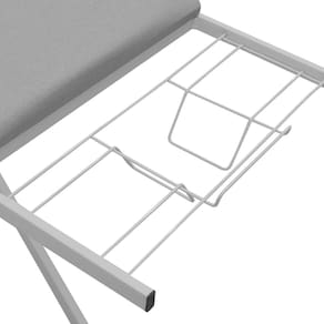 - A Mesa de Passar Suprema Extra conta com tampo em madeira grande com 40 x 120 cm revestido em tecido metalizado que ajuda a manter o calor do ferro, suporte para ferro de passar e 03 regulagens de altura