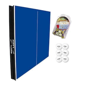 MESA PING PONG 15mm 1001 KLOPF – Acabamento em primer azul com linhas demarcatórias brancas; – Pés de madeira maciça dobráveis; – Medidas da Mesa: C x L x A – ( 2,74 x 1,52 x 0,76 ) m.