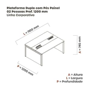 Mesa corporativa para 2 lugares com pé painel adequado para ambientes de coworking. Esse complemento é projetado para ser utilizado em conjunto com outras mesas, permitindo aumentar o número de lugares disponíveis. Ela combina funcionalidade e estilo, proporcionando um espaço colaborativo confortável para trabalhar. Você pode adicionar essa mesa a outras unidades para criar um ambiente expansível conforme necessário. Produto Montado: Sim Acompanha Manual de Instalação: Sim Ambiente Principal: Escritório codigo_ean: 7909903572412 Complexidade da Montagem: Baixa: pode ser montado por uma pessoa sozinha Cor: Nogueira Casablanca/Preto Cor do Produto: Nogueira Casablanca/Preto Cor Flex: Não Cor Interna: Nogueira casablanca/Preto Dobrável: Não Escala de Brilho: Semi-Fosco Espessura do Tampo: 25 mm Formato: Retangular Itens Inclusos: 1 mesa plataforma dupla 2 lugares Linha ou Coleção: Linha Corporativa Manual de Montagem e Instalação: https://product-hub-prd.madeiramadeira.com.br/892245/documents/2e720fd3-5107-43ae-9182-a57f8d8dc25f20Dupla200220PC3A920Painel.pdf Material da Estrutura: Aço Material do Tampo: MDP Material dos Pés: Polipropileno Material Principal: MDP Montagem Flex: Não Necessita Montagem: Sim Origem do Produto: Nacional Peso: 42,7072 kg Possui Painel: Não Possui Passa Cabos: Não Possui Porta Objetos: Não Possui Portas: Não Possui Prateleiras: Não Possui suporte para CPU: Não Possui Suporte para Teclado: Não Possui Vidro: Não Recomendações de Uso, Manutenção e Limpeza: Utilize pano úmido com para limpeza Sapatas Niveladoras: Sim Sistema de Montagem: Parafuso Suporta Até (kg): 30 kg