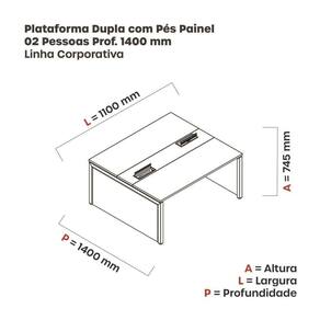 Mesa corporativa para 2 lugares com pé painel adequado para ambientes de coworking. Esse complemento é projetado para ser utilizado em conjunto com outras mesas, permitindo aumentar o número de lugares disponíveis. Ela combina funcionalidade e estilo, proporcionando um espaço colaborativo confortável para trabalhar. Você pode adicionar essa mesa a outras unidades para criar um ambiente expansível conforme necessário. Produto Montado: Sim Acompanha Manual de Instalação: Sim Ambiente Principal: Escritório codigo_ean: 7909903597088 Complexidade da Montagem: Baixa: pode ser montado por uma pessoa sozinha Cor: Nogueira casblanca/Branco Cor do Produto: Nogueira casblanca/Branco Cor Flex: Não Cor Interna: Nogueira casblanca/Branco Dobrável: Não Escala de Brilho: Semi-Fosco Espessura do Tampo: 25 mm Formato: Retangular Itens Inclusos: 1 mesa plataforma dupla 2 lugares Linha ou Coleção: Linha Corporativa Manual de Montagem e Instalação: https://product-hub-prd.madeiramadeira.com.br/894920/documents/1e4e942c-9dbc-45aa-8e2c-3fb816a3753620Dupla200220PC3A920Painel.pdf Material da Estrutura: Aço Material do Tampo: MDP Material dos Pés: Polipropileno Material Principal: MDP Montagem Flex: Não Necessita Montagem: Sim Origem do Produto: Nacional Peso: 47,251 kg Possui Painel: Não Possui Passa Cabos: Não Possui Porta Objetos: Não Possui Portas: Não Possui Prateleiras: Não Possui suporte para CPU: Não Possui Suporte para Teclado: Não Possui Vidro: Não Recomendações de Uso, Manutenção e Limpeza: Utilize pano úmido com para limpeza Sapatas Niveladoras: Sim Sistema de Montagem: Parafuso Suporta Até (kg): 30 kg