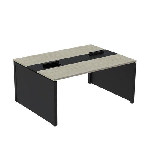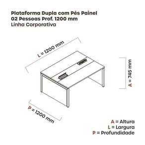 Mesa de Plataforma Dupla para 2 Pessoas Corporativa 120x120/2p Nogueira Casablanca/Preto - Bege